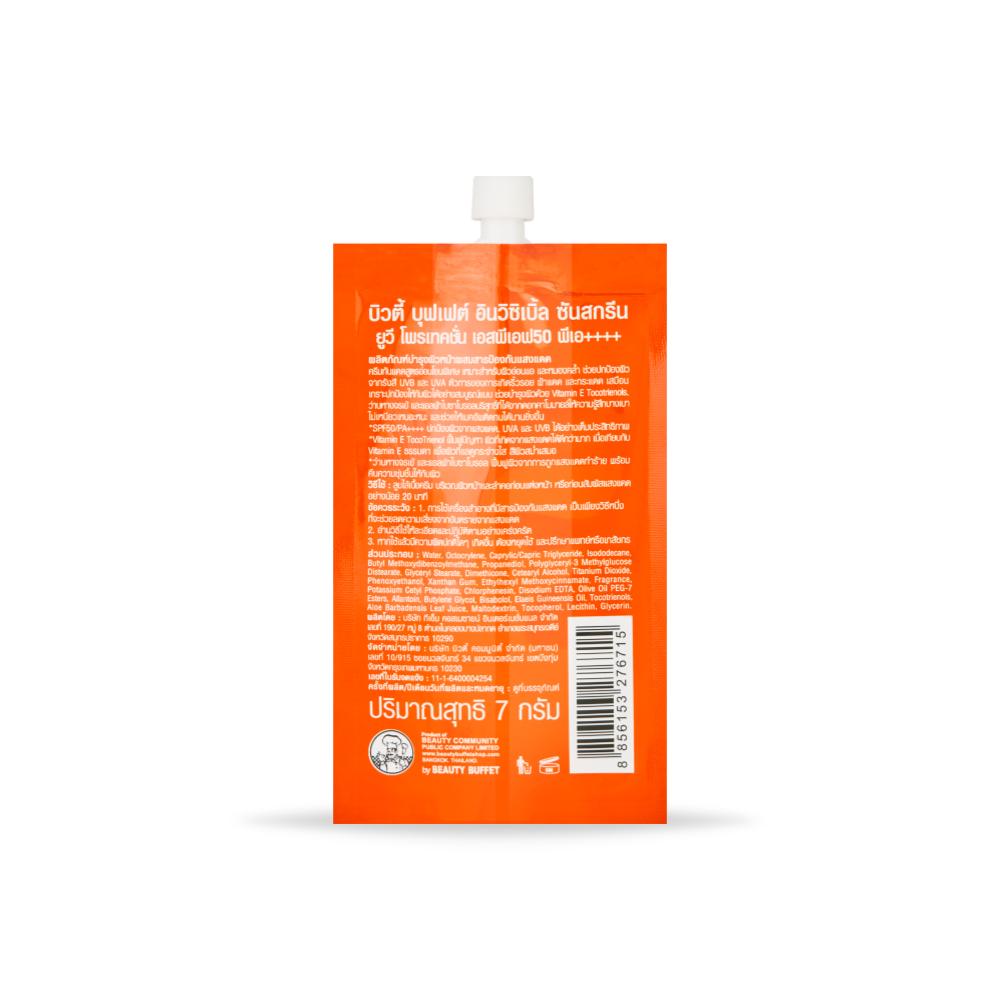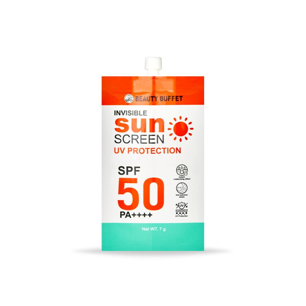 BEAUTY BUFFET INVISIBLE SUNSCREEN UV PROTECTION SPF 50 PA++++ (SACHET 7 G) บิวตี้ บุฟเฟต์ อินวิซิเบิ้ล ซันสกรีน ยูวี โพรเทคชั่น เอสพีเอฟ 50 พีเอ++++