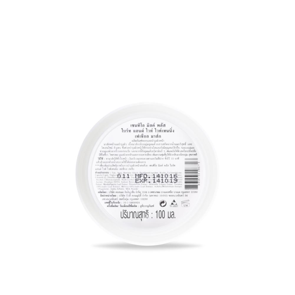 – ที่มาส์กหน้า beauty buffet เซนทิโอ มิลค์พลัส ไบร์ แอนด์ ไวท์ เฟเชียล มาส์ค ในหนึ่งขวดบรรจุ 100 มิลลิตร