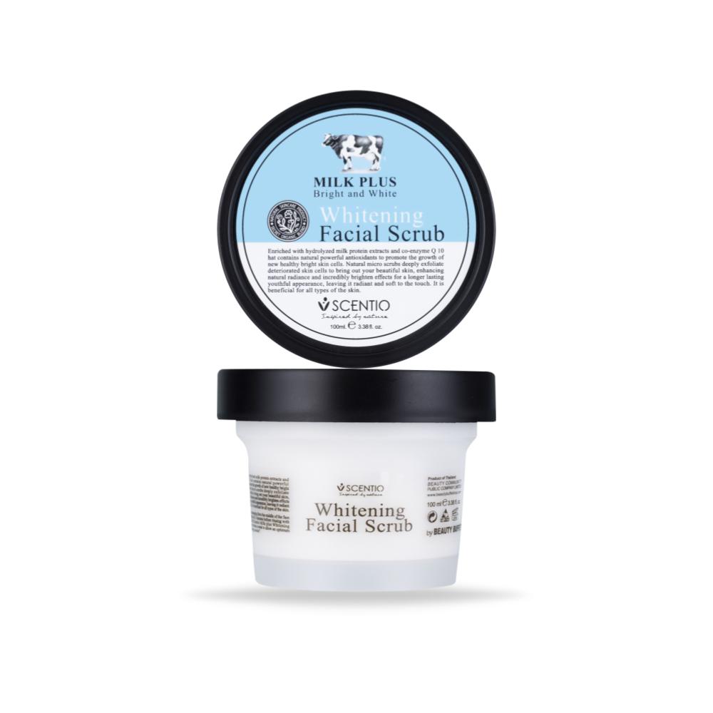 SCENTIO MILK PLUS WHITENING Q10 FACIAL SCRUB (100 ML) เซนทิโอ มิลค์ พลัส ไวเทนนิ่ง คิวเทน เฟเชียล สครับ