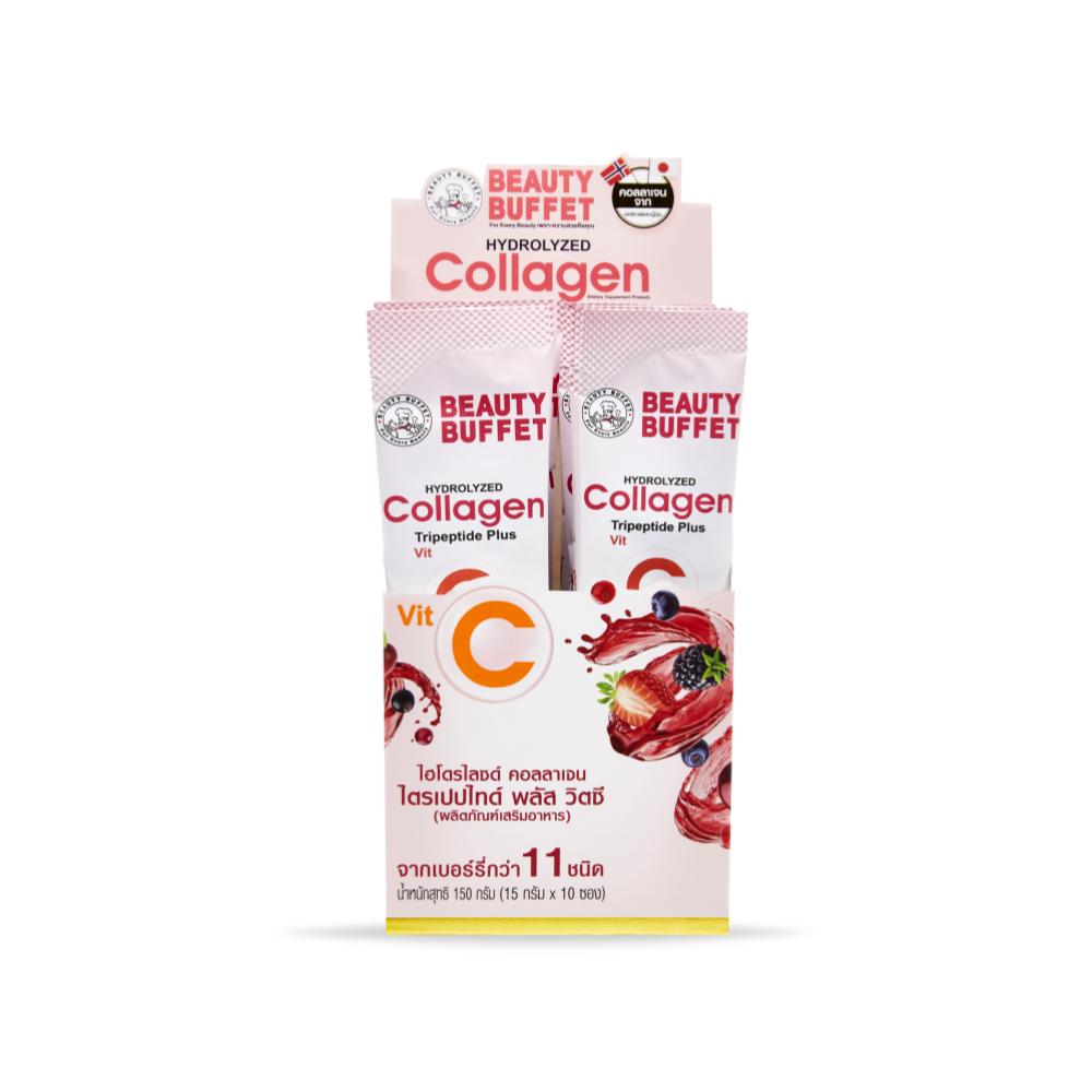 [3 PCS.] BEAUTY BUFFET HYDROLYZED COLLAGEN TRIPEPTIDE PLUS VIT C (15G X 10SACHETS) บิวตี้ บุฟเฟต์ ไฮโดรไลซด์ คอลลาเจน ไตรเปปไทด์ พลัส วิตซี (ผลิตภัณฑ์เสริมอาหาร)