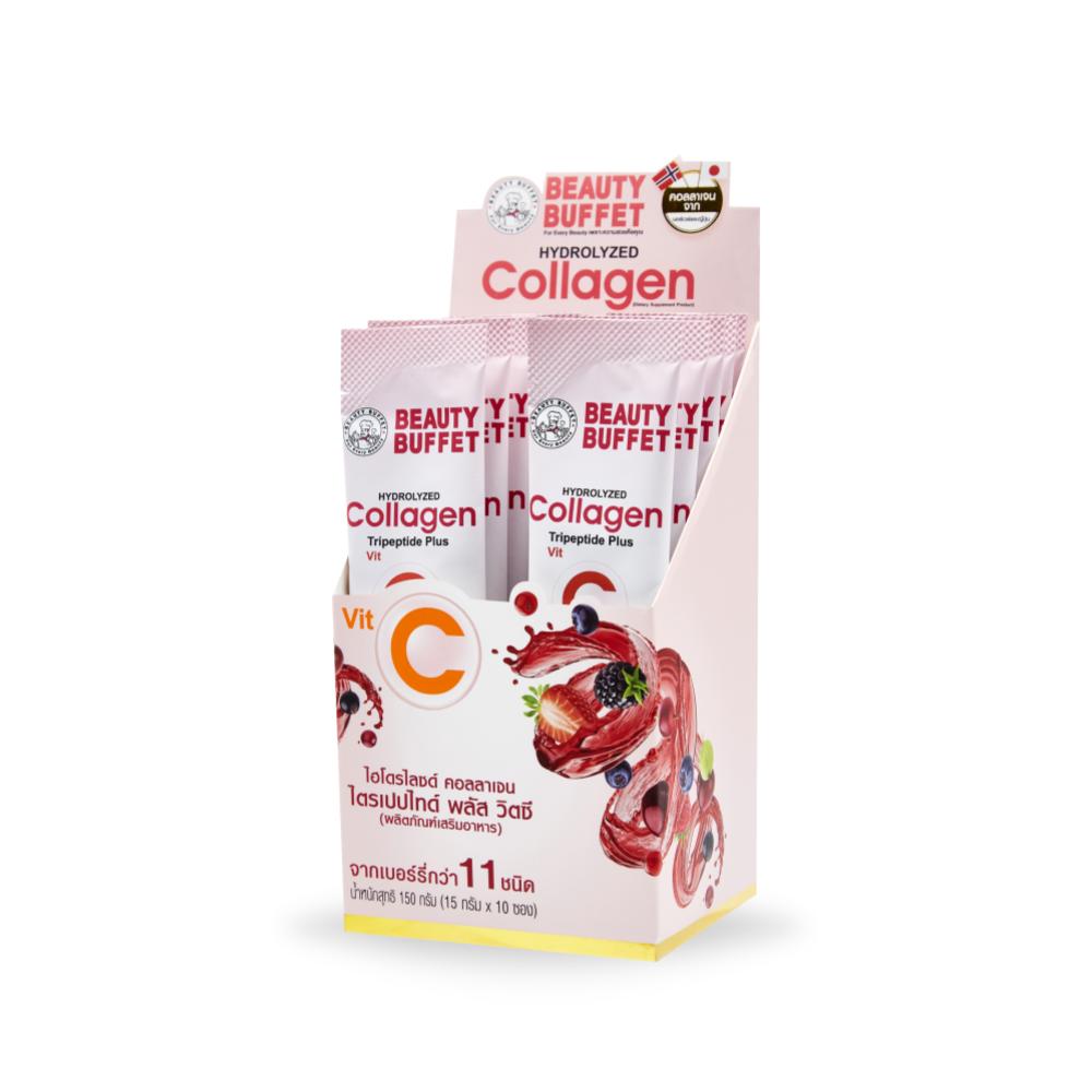 BEAUTY BUFFET HYDROLYZED COLLAGEN TRIPEPTIDE PLUS VIT C (15G X 10SACHETS) บิวตี้ บุฟเฟต์ ไฮโดรไลซด์ คอลลาเจน ไตรเปปไทด์ พลัส วิตซี (ผลิตภัณฑ์เสริมอาหาร)