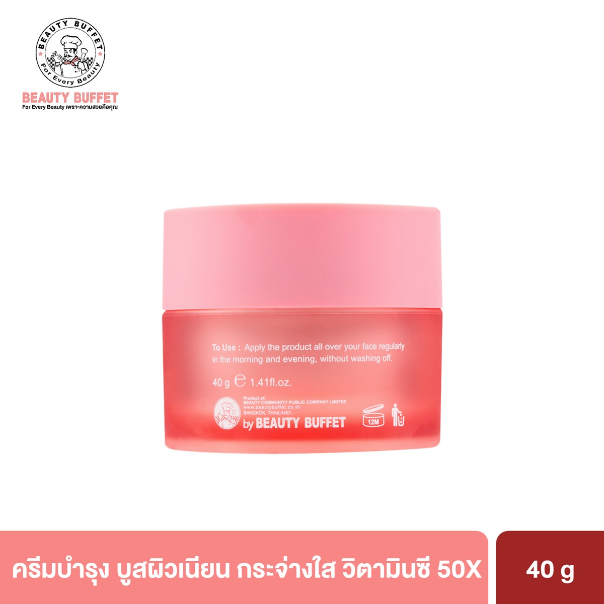 ครีมบำรุงผิวเนื้อเข้มข้น ไม่เหนียวเหนอะหนะ ช่วยให้ผิวหน้าเนียนนุ่มชุ่มชื้น และแลดูกระจ่างใสด้วยสารสกัดจาก Carissa carandas extract ที่อุดมไปด้วยวิตามินซี แอนโทไซยานิน และ AHA ช่วยต่อต้านอนุมูลอิสระ และผลัดเซลล์ผิวจากธรรมชาติ ผสานคุณค่า Superfruit จาก Camu Camu ที่มีวิตามินซีสูงกว่าส้มถึง 50 เท่า พร้อมทั้งยังมีอนุพันธ์วิตามินซี, Niacinamide และ PDRN ที่ช่วยเผยผิวให้กระจ่างใส สุขภาพดี ชุ่มชื้น อิ่มฟู ลดเลือนความหมองคล้ำ และจุดด่างดำ