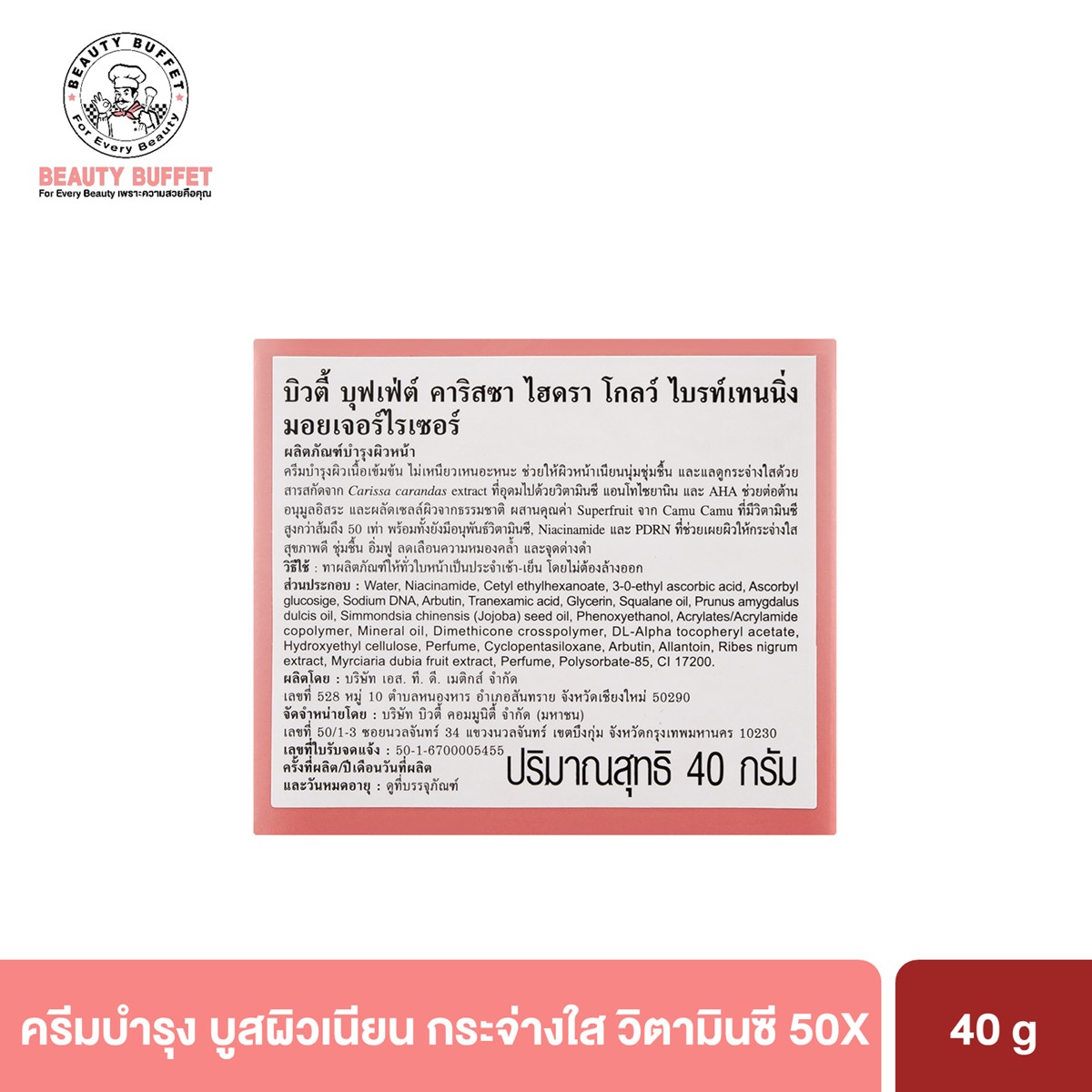 BEAUTY BUFFET CARISSA HYDRA GLOW BRIGHTENING MOISTURIZER บิวตี้ บุฟเฟ่ต์ คาริสซา ไฮดรา โกลว์ ไบรท์เทนนิ่ง มอยเจอร์ไรเซอร์